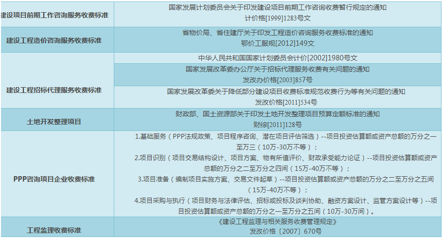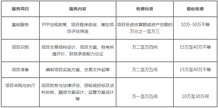 PPP咨詢項(xiàng)目企業(yè)收費(fèi)標(biāo)準(zhǔn)