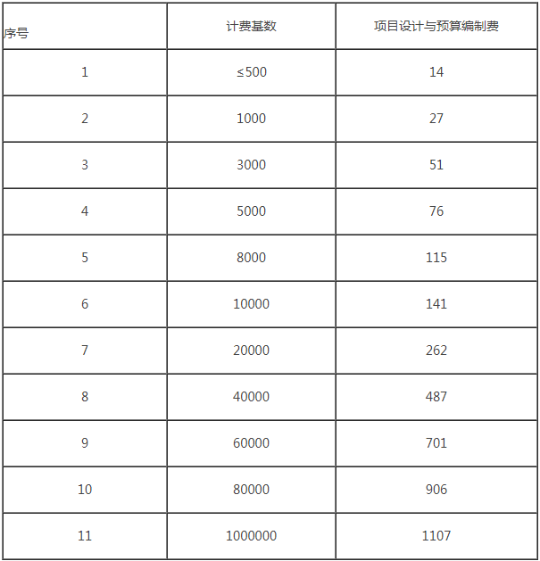 項(xiàng)目設(shè)計(jì)與預(yù)算編制費(fèi)計(jì)費(fèi)標(biāo)準(zhǔn)