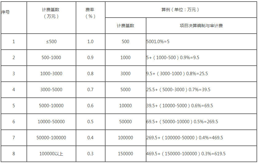 以工程施工費(fèi)與設(shè)備購(gòu)置費(fèi)之和最為計(jì)費(fèi)基數(shù),采用差額定率累進(jìn)法計(jì)算。