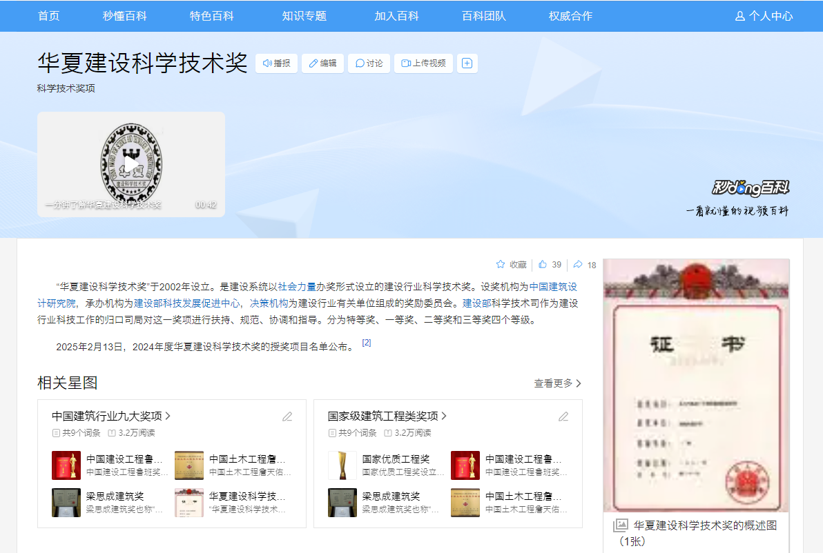 “華夏建設科學技術獎”于2002年設立,是中國建筑行業(yè)九大核心獎項之一,與魯班獎、詹天佑獎等齊名。該獎項經國家科技部批準設立,是建設系統(tǒng)以社會力量辦獎形式設立的全國建設行業(yè)最高科學技術獎項。其旨在獎勵在建設行業(yè)工作中有重要貢獻的組織和公民,貫徹科教興國戰(zhàn)略,促進科技成果向生產力轉化,推動科技進步、提升技術水平、培養(yǎng)科技人才,全面提升我國建設行業(yè)綜合科技創(chuàng)新水平。